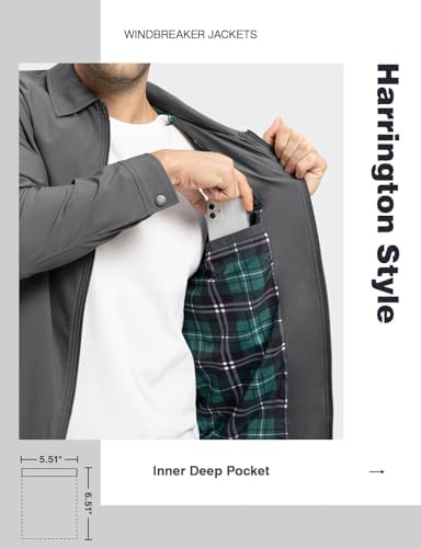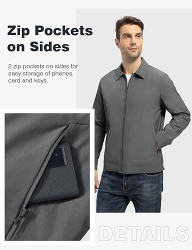 TBMPOY Men’s Lightweight Jackets Casual Windbreaker Stylish Light Golf Full Zip Up Work Dress Business with Zip Pockets