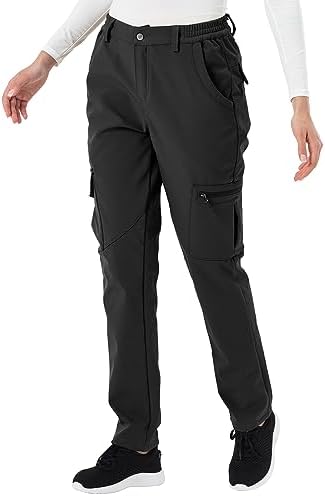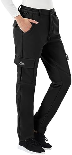TBMPOY Women’s Hiking Cargo Pants Outdoor Waterproof Windproof Softshell Fleece Snow Pants