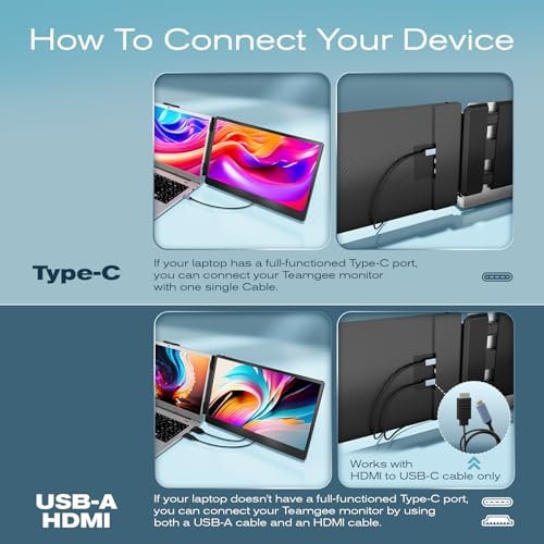 Raise Productivity by 200% – With support for both extension and mirroring modes, the Teamgee laptop screen extender enables simultaneous multi-screen or independent display, making multitasking and remote working a breeze. It also supports 0-180 degree rotation, giving you the flexibility to adjust to the most comfortable viewing angle, making it ideal for presentations in meetings and increasing your work efficiency.