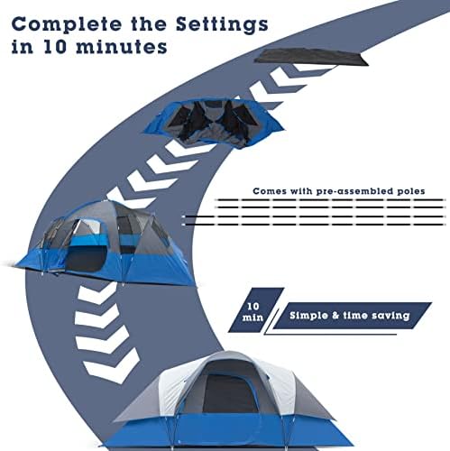 【Easily Assembled and Stored】: This family tent is easy to set up, 2 people could set it up in 10 minutes. When you finish your trip, take 5mins to restore family tent in the carry bag easily. Handy space of storage, easier to carry and use.