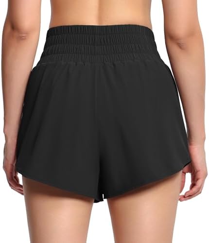 THE GYM PEOPLE Women’s Athletic Shorts Elastic Waisted Quick Dry Ruffle Tennis Workout Skorts with Mesh Liner Zip Pockets