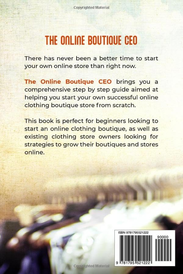 The online boutique CEO is a comprehensive step by step book aimed at helping you start and launch your own successful online clothing boutique line from scratch. This book is perfect for beginners looking to start an online clothing boutique line as well as existing clothing store owners looking for strategies to help grow their boutiques and stores online.