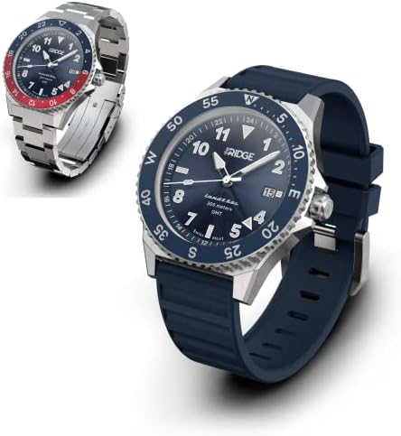 Movement: The Swiss GMT movement is purpose-built for international travelers. Monitor up to three time zones at once. Case: Marine-grade, corrosion-resistant Stainless Steel Case. The streamlined design and comfortable on-wrist experience is an ideal daily driver. Strap: Interchangeable Steel & Rubber Strap Set provide multiple options for different occasions and needs.