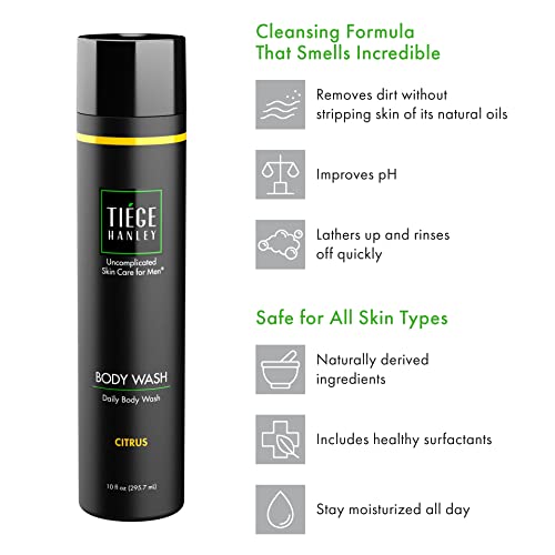 Tiege Hanley Daily Body Wash for Men | Gently Removes Dirt, Sweat and Oil | Citrus Scent | 10 fluid ounces | Made in the USA | 3 Pack