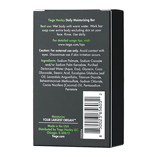 Tiege Hanley Daily Cleansing and Moisturizing Bar Soap for Men (MOISTURIZING BODY BAR) | COCONUT OIL & EUCALYPTUS to MOISTURIZE Skin | Subtle Scent | Made in the USA | 5 Ounce Bar