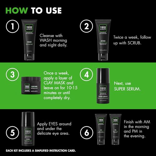 Tiege Hanley Mens Skin Care Set, Revitalization Skin Care Routine for Men (System Level 4) – Men’s Skincare Set for Fine Lines Includes Face Wash, Scrub, Moisturizer, Eye Cream, Face Serum, Clay Mask