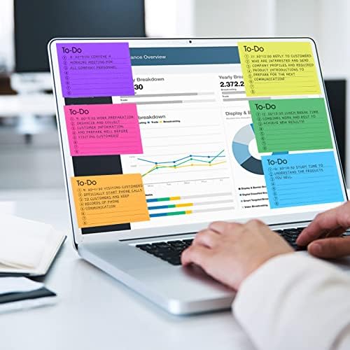 【Quality Material】sticky note to do list is made of quality paper, with good stickiness, which is sturdy, easy to paste and will not peel off; It is very suitable for pasting on books, folders, glass, displays, and file cabinets. Brightly colored lined notes keep important information from going unnoticed