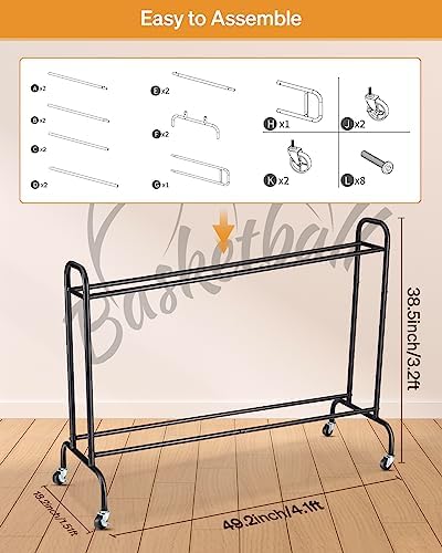 REMOVABLE & IDEAL FOR MULTI-OCCASIONS : The ball racks can move it easily. Equipped with 4 sturdy multi-directional wheels (including 2 lockable). It is ideal for the garage, home, school, Basketball training ground and more other places.