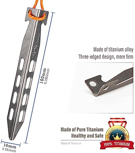 Be the first to review “TiTo 6 Pack Titanium Tent Stakes 10X10X160mm V-Shaped Windproof Tent Nail Pegs with Carrying Pouch for Camping, Hiking, Gardening and Canopy (Silver,10X160mm)”