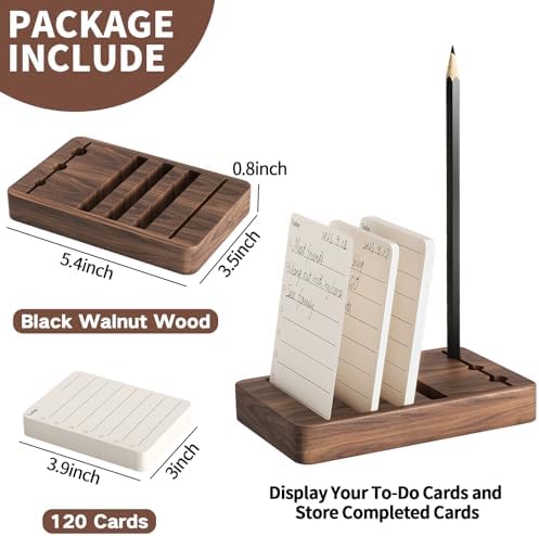 To To Do List Notepad Stand, Undated Daily To Do Checklist Cards, 120 Pcs To Do List Planner with Walnut Stand, To Do List Cards Holder for Work Desk or School ADHD Office Accessories