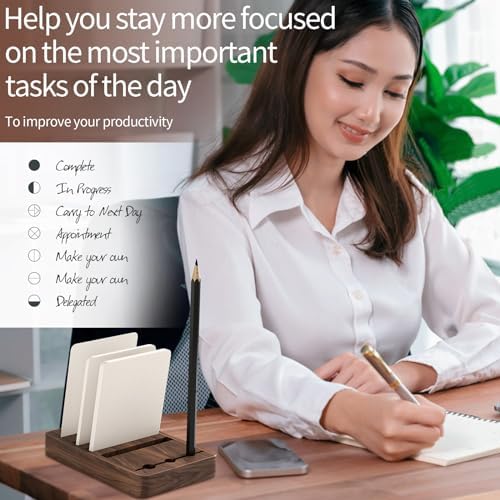 【New Upgrade Features slots】The wood to do list card holder Features slots design that displays and holds the daily tasks planners efficiently and 3 slots of different sizes for convenient storage of various types of pens