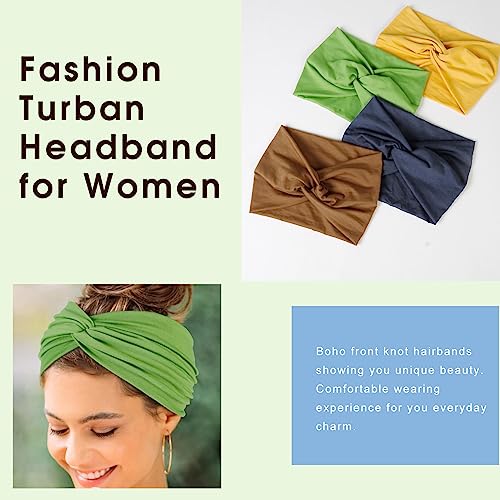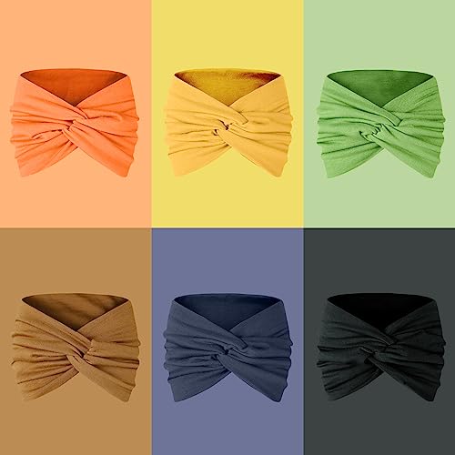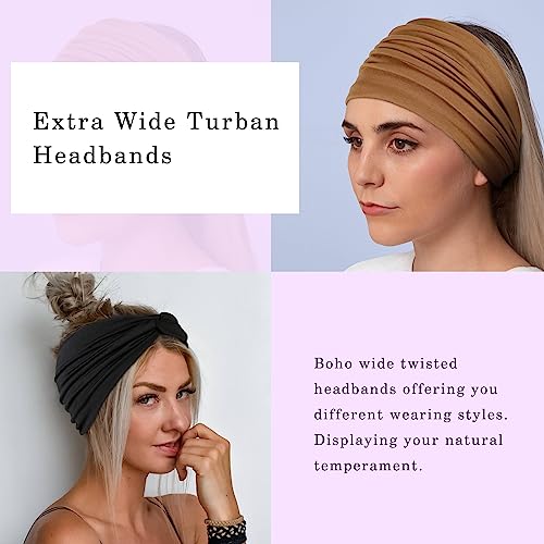 Tobeffect Extra Wide Turban Headbands for Women, 7” Large Hairbands Boho Colorful Headband Twisted Knot Hair Accessories, 6 Pack