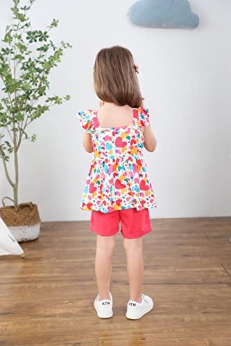 Toddler Baby Girls Summer Clothes Outfits Ruffled Sleeve Dinosaur Shirt Leopard Tops and Shorts Pants Sets 2PCS