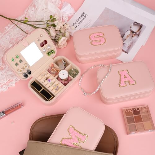 TopPerfekt Jewelry Box Travel Jewelry Case With Mirror, Jewelry Organizer Bridal Shower Gifts To Her, Earring Travel Case Teen Girl Gifts Trendy Stuff, Gift for Women and Girls Initial K