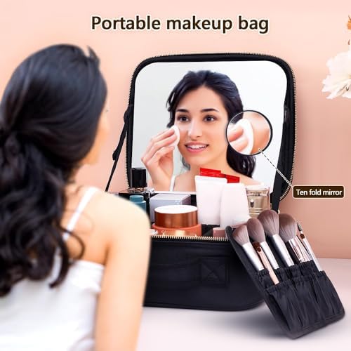 Travel Makeup Bag Make up Case with Mirror Cosmetic Makeup Box Organizer Vanity Case for Women Beauty Tools Accessories Case