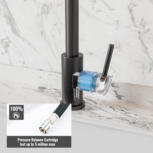 User-Friendly Operation: Designed for effortless usability, this single handle kitchen faucet with sprayer boasts a single-handle configuration and a shorter handle for easy installation, even in spaces with minimal back splash clearance. The elevated spout height provides ample room for comfortable cleaning and washing, allowing you to navigate your kitchen tasks with unparalleled ease and convenience.