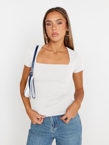 Trendy Queen Women’s Square Neck Tops Short Sleeve Shirts Going Out Tops 2024