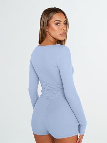 Trendy Queen Womens Two Piece Sets Lounge 2 Piece Outfits Ribbed Knit Shorts and Long Sleeve Button Down Top Tracksuit 2024