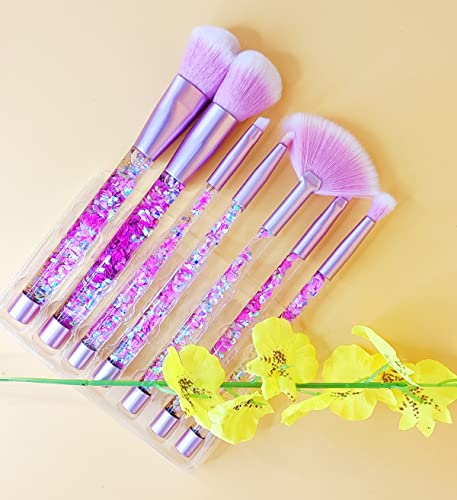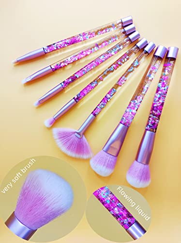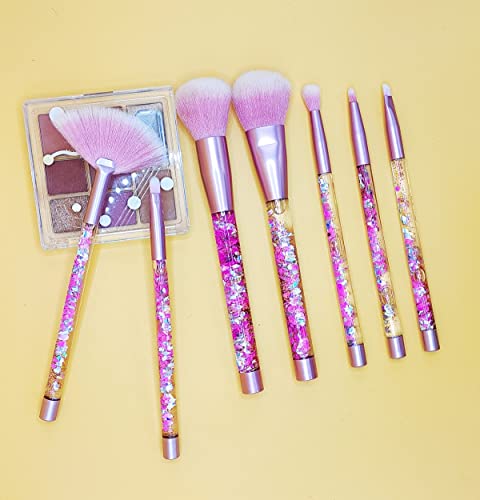 Unicorn Glitter Makeup Brush Set, Sparkle Fan Liquid 7pc Foundation Brush with Lip Eye Nose Shadow Eyebrow Blush Loose Powder Fan Eye Brush in Set for Teen Girls Women Chirldren Kids Gift Present
