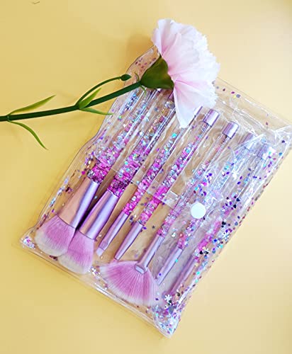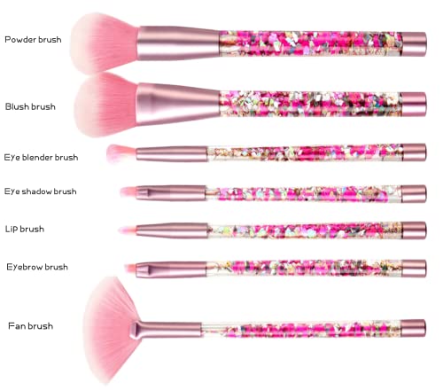 Pink Makeup Brush with Liquid High quality materials This cosmetic brush is made of high-quality fiber, which is very soft and comfortable to touch the skin. Beautiful liquid in the brush rod The sparkle makeup brush rod is full of beautiful glitter liquid quicksand, they float through the rod and will never leak ,better than others. Beautiful pink case The glitter makeup brushes set has a beautiful case,there’s a hard plastic groove inside, perfect for putting down every brush,perfectly protect the makeup brushes set from wear and tear The most basic 7 brushes 7pcs foundation brushes ,meet daily makeup requirements, suitable for novice and basic makeup. A very special gift Colorful pink color makeup brushes,Seeing it makes you feel comfortable,a beautiful gift for girls. Package Include The colorful makeup brushes set include: in the first picture from left to right 1 Loose powder brush 2 Blush brush 3 Nose shadow brush 4 Lip brush 5 Fan brush 6 Eyebrow brush 7 Eyeshadow brush A beautiful case with hard plastic groove inside Precautions for cleaning makeup brushes (1) Never wash the sparkle makeup brushes against hair (2) After cleaning, gently press the bristles with a facial tissue or a cotton pad to allow the water to drain quickly. Remember not to twist the bristles to cause them shedding. (3) Dry in a cool place,do not blow with a hair dryer, or dry them in the sun
