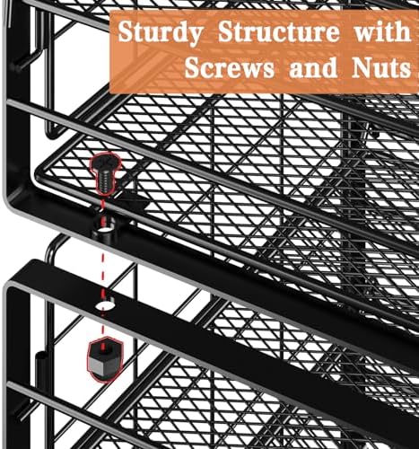 Color: Black Material: Carbon steel Single Size: 11.65″(L)*10.7″(W)*10″(H)Stackable Size: 11.65″(L)*10.7″(W)*19.8″(H)