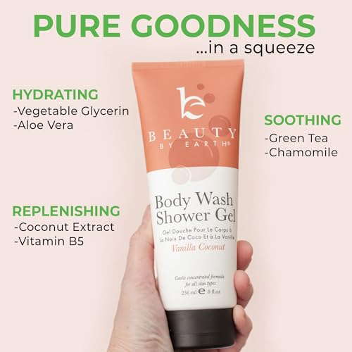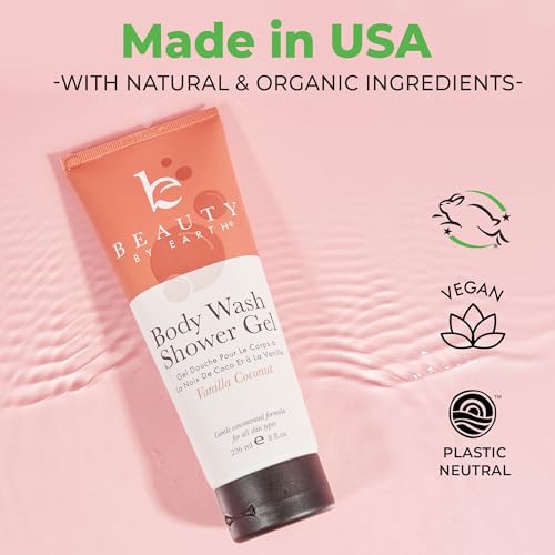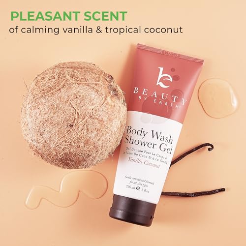 Vanilla Coconut Natural Shower Gel Body Wash – USA Made with Organic Ingredients, Moisturizing Natural Body Wash for Women, Gentle & Non Toxic Daily Wash for Sensitive Skin, Clean Body Soap Liquid
