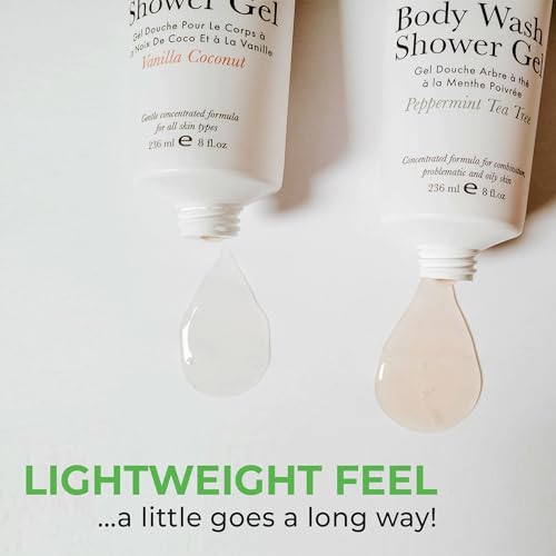 GENTLE AND POWERFUL CLEANSE: Our vanilla coconut natural body soap offers a simple yet effective formula to 𝐝𝐞𝐚𝐥 𝐰𝐢𝐭𝐡 𝐢𝐦𝐩𝐮𝐫𝐢𝐭𝐢𝐞𝐬 𝐨𝐧 𝐲𝐨𝐮𝐫 𝐬𝐤𝐢𝐧. The concentrated formula of our natural body wash and body soap offers numerous uses in compact packaging.