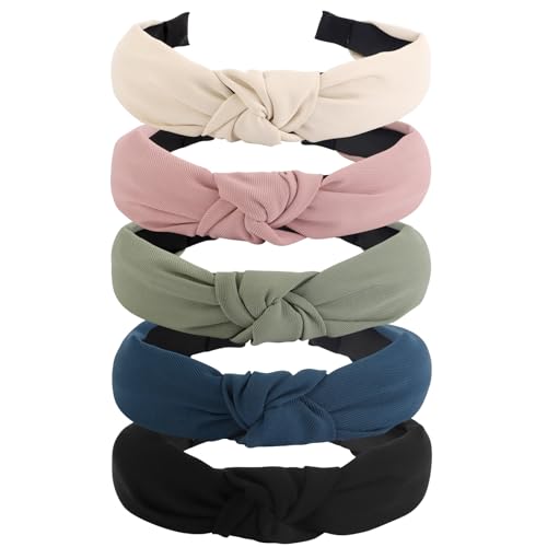 VELSCRUN 5 Pack Headbands for Women Gilrs Fashion Knotted Head Bands Solid Headband Non Slip Hair Band for Womens Thin Thick Short Hair Face Wash Hair Accessories Gifts for Women B