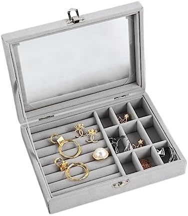 Velvet Glass Jewelry Ring Display Stand Storage Box Ring Earrings Jewelry Box Ring Holder Case (Grey)