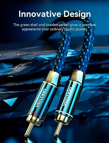 VENTION RCA Cable 4N OFC – Enhance Your Audio Experience with Gold Plated, Nylon-Braided 2RCA Male to Male Stereo Audio Cord for Home Theater, HDTV, Hi-Fi Systems, Car Audio, and Speakers