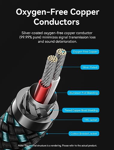 【Long-Lasting Performance Design】The durable and flexible TPE+ cotton mesh braided outer jacket, along with the sturdy brass outer shell (main body:yellow brass + tail:zinc alloy), guarantees a tested 15000+ bend lifespan. Enjoy a tangle-free experience, making these cables ideal for home-entertainment and high-fidelity (HiFi) systems.