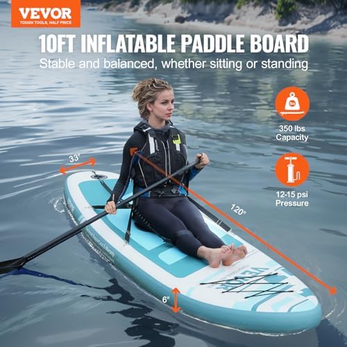 VEVOR Inflatable Stand Up Paddle Board, 10ft/10.6/11ft Wide SUP Paddleboard, with Board Accessories, Pump, Paddle, Fin, Phone Bag, Backpack, Ankle Leash, Repair Kit, Non-Slip Deck for Youth & Adults
