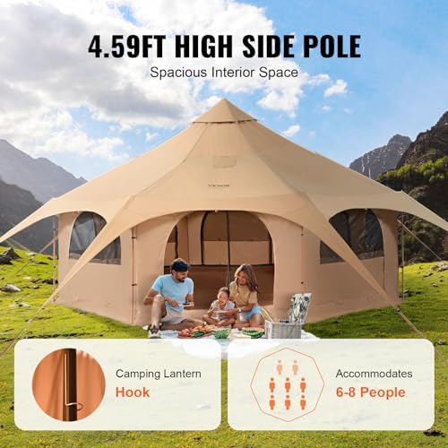 Spacious Interior: With a 4 m/13.12 ft diameter, our bell tent comfortably accommodates up to 6 people, providing ample room for family, friends, or group camping, giving you plenty of space to move around.
