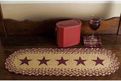 VHC Brands Classic Country Primitive Tabletop & Kitchen – Burgundy Tan Jute Red Stencil Stars Runner, 8″ x 24″