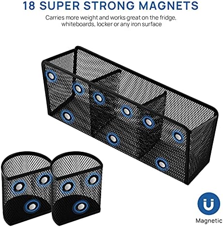 Our pen holders are made of durable metal mesh and strong magnets. Large capacity for classrooms school office kitchen supplies. It is good idea for whiteboards lockers refrigerators desks and pegboards organization, including pencils, markers, pens, drawing tools, clips, erasers, and more.