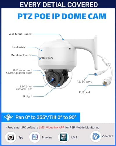 Be the first to review “VIKYLIN 5MP Outdoor PTZ PoE IP Camera with Mic/Audio,Security Pan Tilt 4X Optical Zoom/2.8~12mm Lens,Human/Vehicle Detection,132ft IR Night Vision,IP66 Detection”