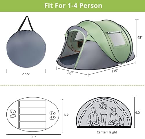 VINGLI Pop Up Camping Tent,Waterproof Automatic Setup -Instant Family Tents for Camping Hiking & Traveling, 110inx79inx48in