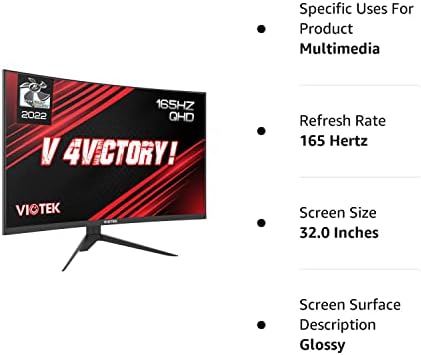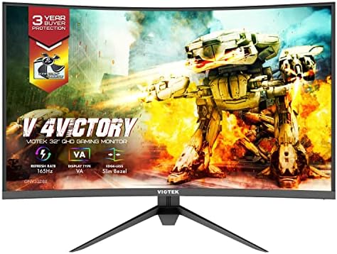 Viotek GNV32DBE 32-Inch Curved Gaming Monitor | 2560x1440p QHD | 165Hz | 120% sRGB | FreeSync/G-Sync | 2X DP, 1x HDMI 2.0 | 3 Years Zero Dead Pixels