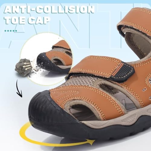 VISIONREAST Mens Leather Sandals Outdoor Hiking Sandals Waterproof Athletic Sports Sandals Fisherman Beach Shoes Closed Toe Water Sandals