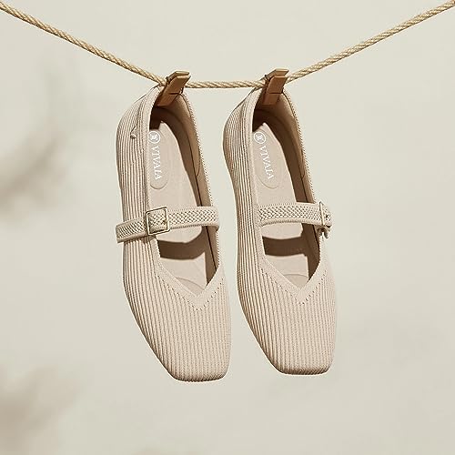 VIVAIA Margot Mary Jane Women Flat Shoes Slip on Square-Toe Washable Shoes Comfortable for Work with Arch Support