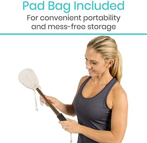 Easily apply moisturizers, creams, ointments and gel to hard to reach areas with the Vive lotion applicator. The dense foam applicator pads are non-absorbing but textured to hold lotions in place without dripping or sliding. Measuring over 17 inches long, the curved handle is made with a durable lotus wood with a clear protective finish.
