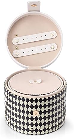 Thanks to its elegant green-black diamond pattern and button-fixed handle, it is a perfect traveling companion on holiday. Dimension of 130mm height and 150mm diameter. Why settle for a plain and ordinary jewelry organizer when you can have a noble and graceful jewelry box that offers both elegance and practicality? Upgrade your travel game and get yours today