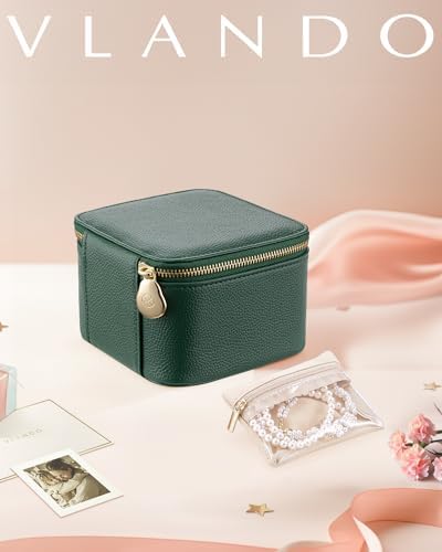Vlando Travel Small Jewelry Case, PU Leather 6 zipper velvet bags for Women Girl,Valentine’s Day Gift, Marriage, Brithday Gift,Earrings Necklace Rings Storage Gift Box Packaging Green