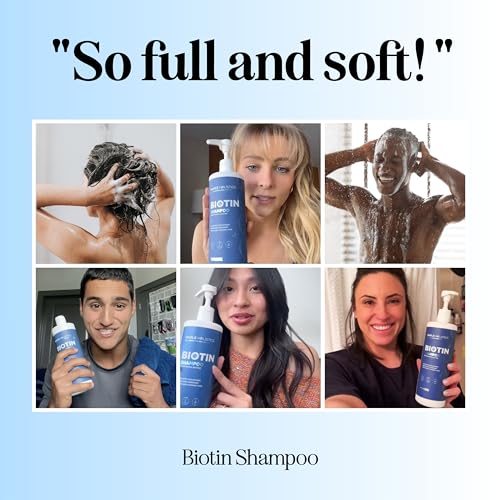 Volumizing Biotin Shampoo for Thinning Hair – Thin Hair Shampoo with Rosemary Argan and Essential Oils for Hair Care – Vegan Sulfate Free Shampoo for Damaged Dry Hair Paraben and Cruelty Free