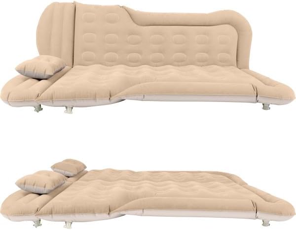 Wakeman Inflatable Mattress – Car Air Mattress for SUV or Tent with Aux Outlet Pump and 2 Inflatable Pillows – Car Camping Gear Outdoors (Beige)