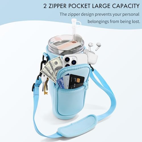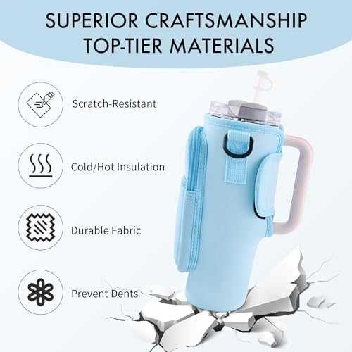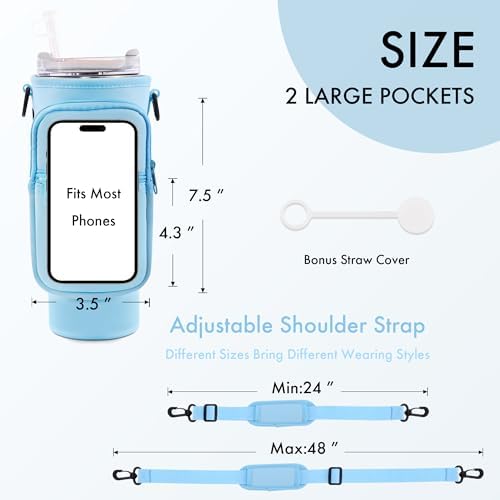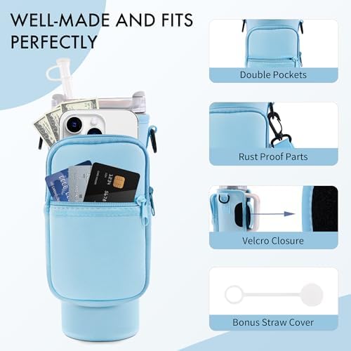 Water Bottle Carrier Bag with Phone Pocket for Stanley Cup 40/30 oz, Water Bottle Holder with Adjustable Strap& Straw Cover, Stanley Cup Accessories