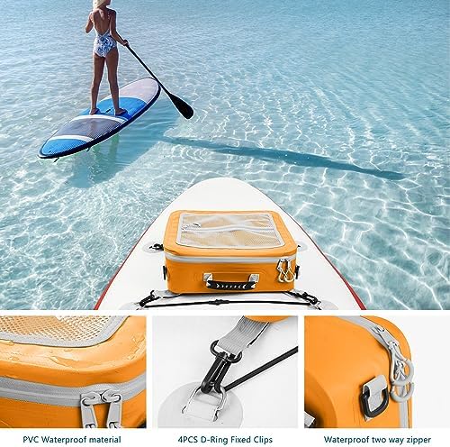 Ideal Paddleboard Accessories Cooler and Deck Bag:MORXPLOR paddleboard deck cooler bag easily fit 12 cans or equivalent amount of food for your day-long excursion.Size:14.6”x13”x4.7”.