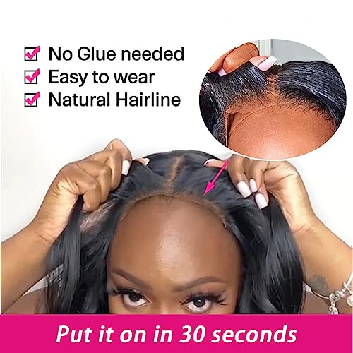 Wear and Go Glueless Bob Wigs Human Hair Pre Plucked Pre cut Wigs for Black Women Human Hair Glueless Body Wave Lace Front Wigs Human Hair Pre Plucked 10Inch