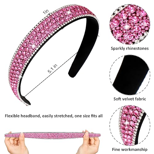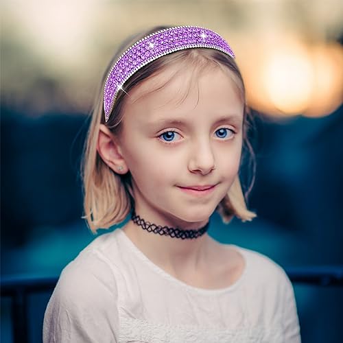 Wecoe 4 Pack Rhinestone Headbands Women Girls Fashion Glitter Sparkly Diamond Headbands Flower Girls Back to School Prom Hair Accessories Women Girls Birthday Gifts (Silver, Pink, Hot Pink, Purple)
