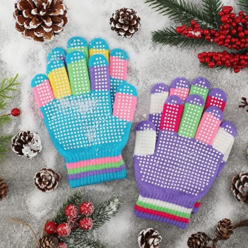 Whaline 9 Pairs Kids Anti-Skid Magic Gloves Winter Knitted Gloves Full Finger Grip Anti-Slip Children Gloves for Boys Girls